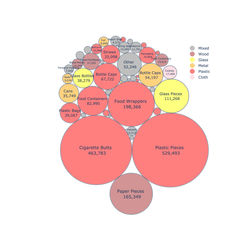 Between 2013 - 2024, SOS collected 463,783 cigarette butts from beaches, open spaces, and public areas! As the singularly most identifiable item littered locally, we know this is just a snapshot of the cigarette litter that continues to negatively impact human and ecosystem health.